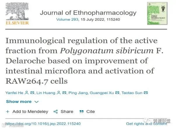 对此,皖西学院生物技术与制药工程学院的何燕飞教师团队开展了相关研究,并在Journal of Ethnopharmacology(Q2,IF: 5.195)期刊上发表了题为“Immunological regulation of the active fraction from Polygonatum sibiricum F. Delaroche based on improvement of intestinal microflora and activation of RAW264.7 cells”的研究论文。