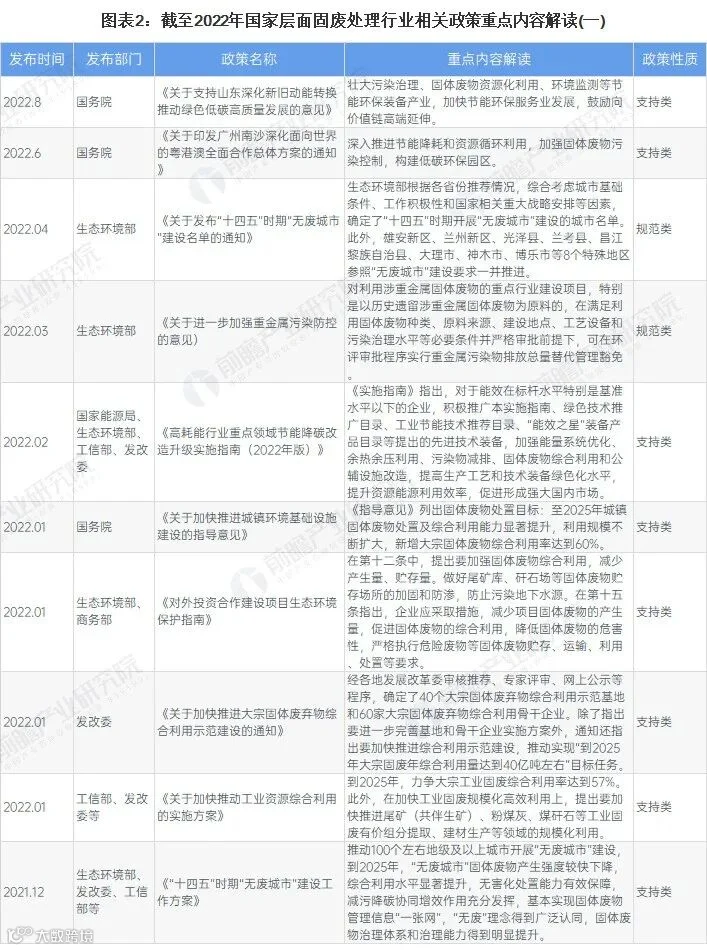 近年来,中国固废处理行业国家政策层出不穷,具体政策如下: