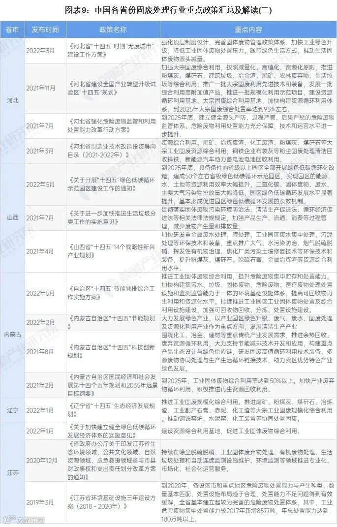 在国家政策的引导下,各省市地方政策近年来也均对固废处理行业有所提及: