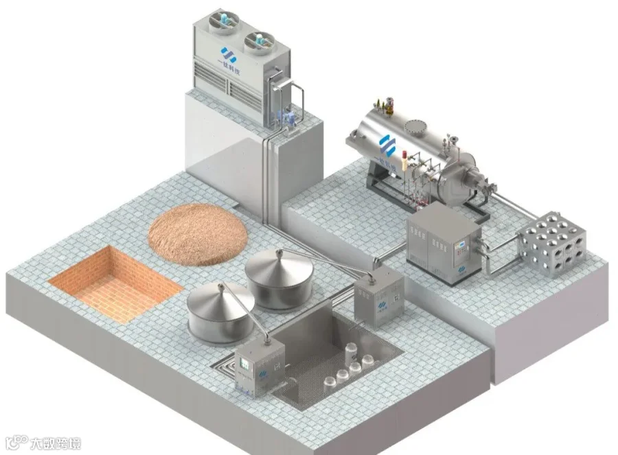 除开各类能源品种制取热能的途径,热能的清洁来源主要来自余热的梯次利用。蒸粮过程中的排出蒸汽与蒸酒过程中冷酒器的循环水均具有较好的余热可利用水平,此部分热力可用于预热泡粮水、焖粮水和清洁用水等低温热能需求。