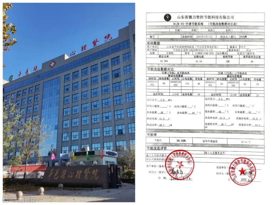 ▲医院案例:山东省平邑县精神病医院(节能率58.69%)