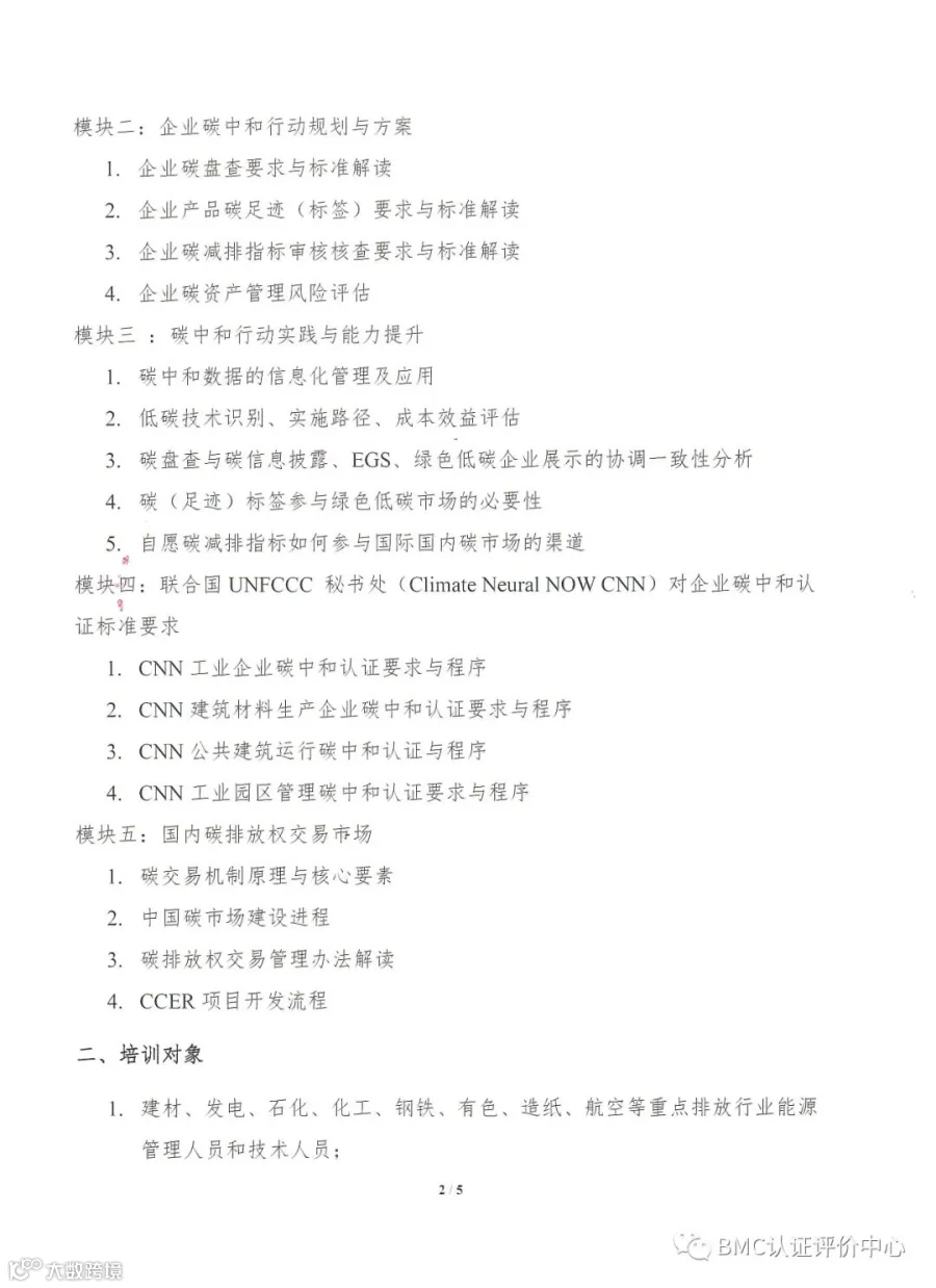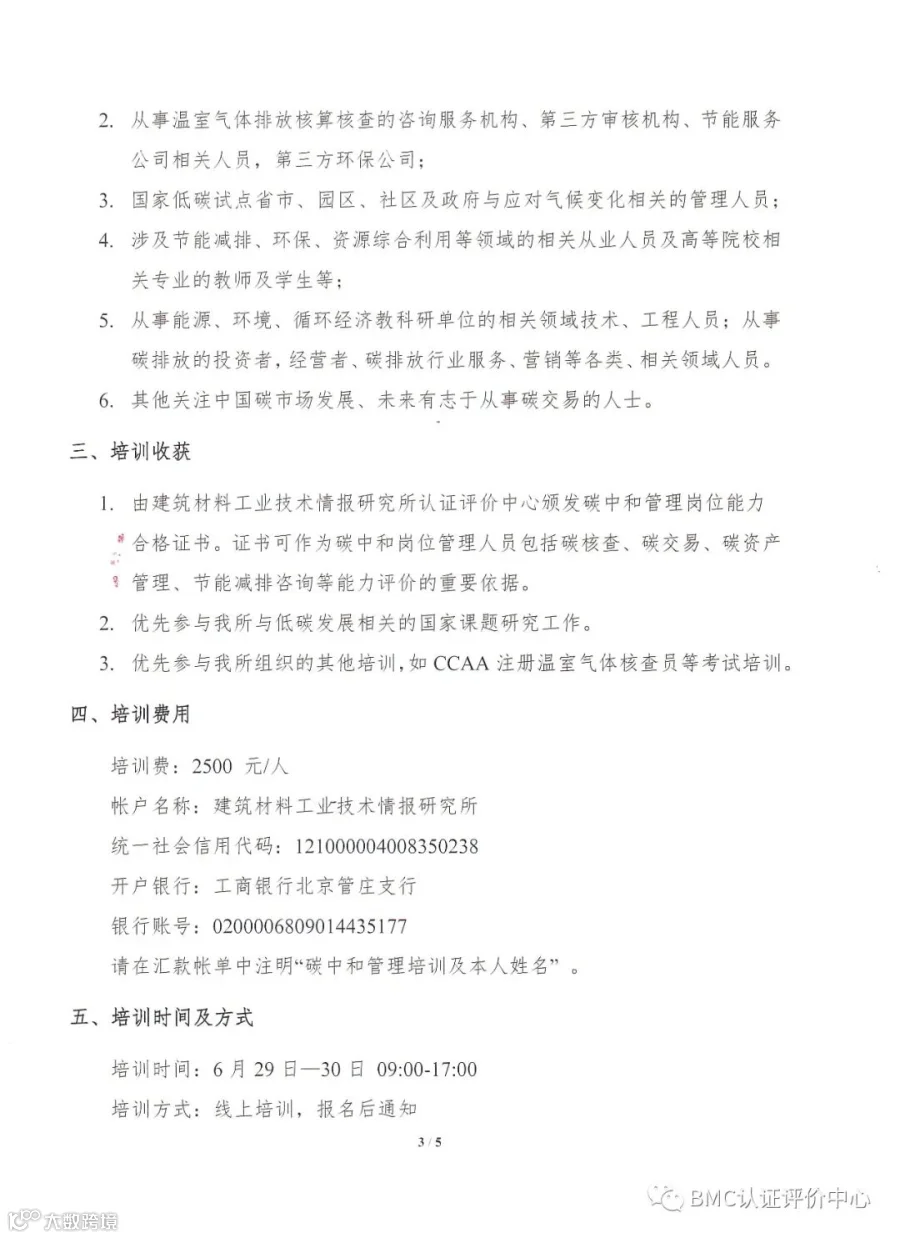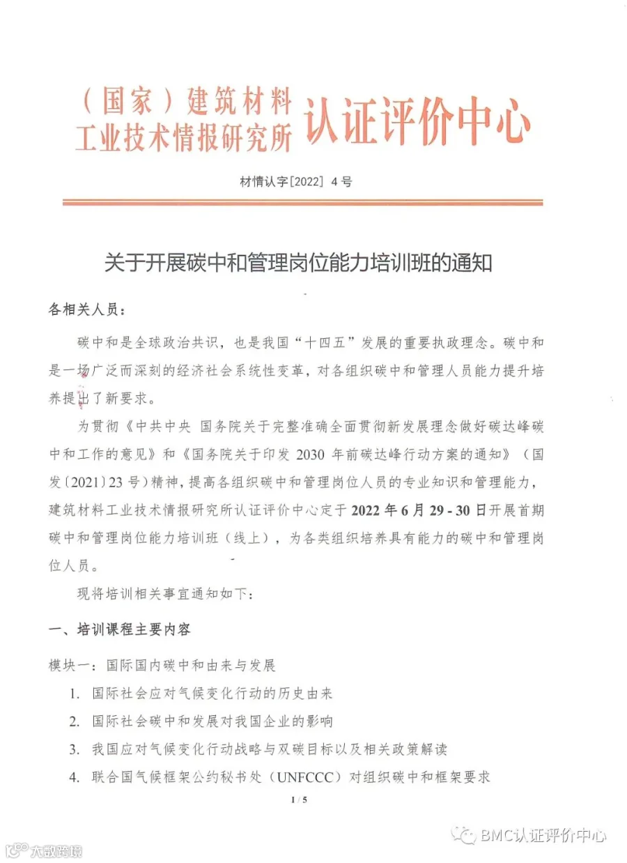 关于开展首期碳中和管理岗位能力培训班的通知