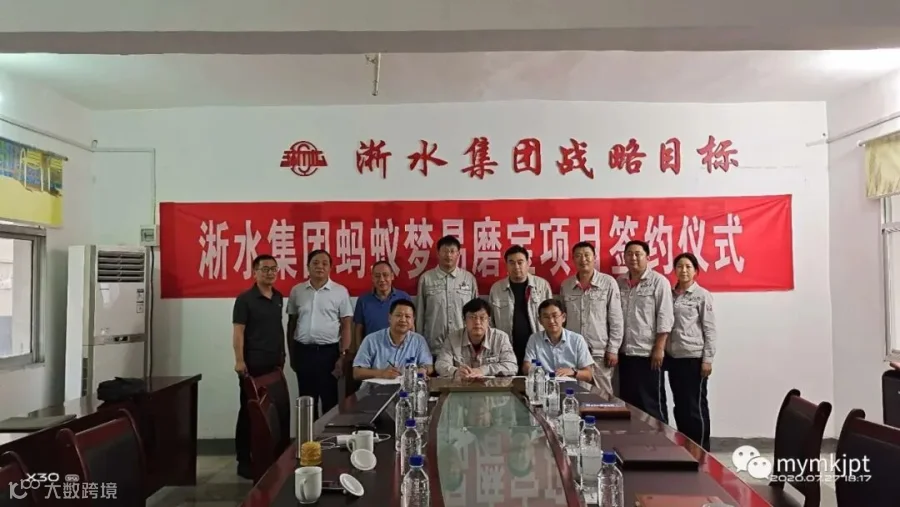 2020年7月27日,蚂蚁梦易磨宝项目正式落地淅水集团,淅水集团总经理牛晓明,广东蚂蚁梦科技有限公司董事长林勋煌,董事蔡洪、刘建永,以及项目组全体成员共同出席了签约仪式。