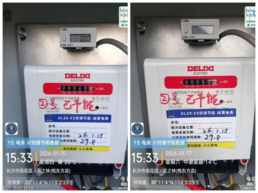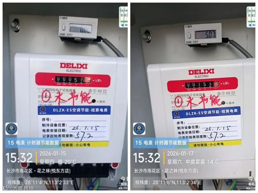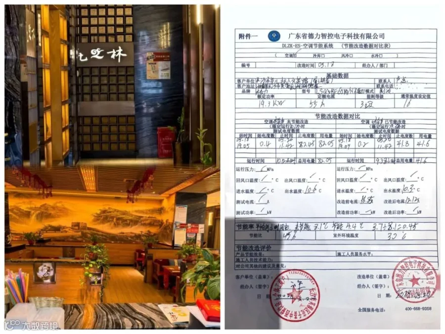 ▲花之林(南湖店)实测制冷节能率45%