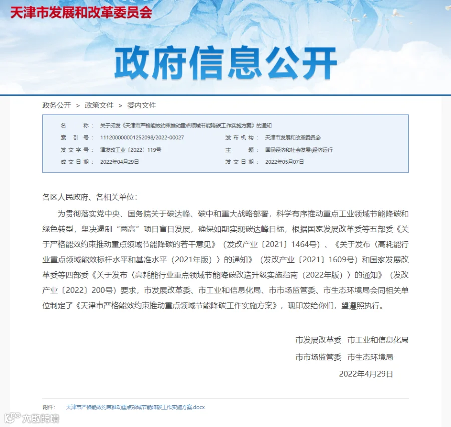 4. 天津:推动重点领域节能降碳