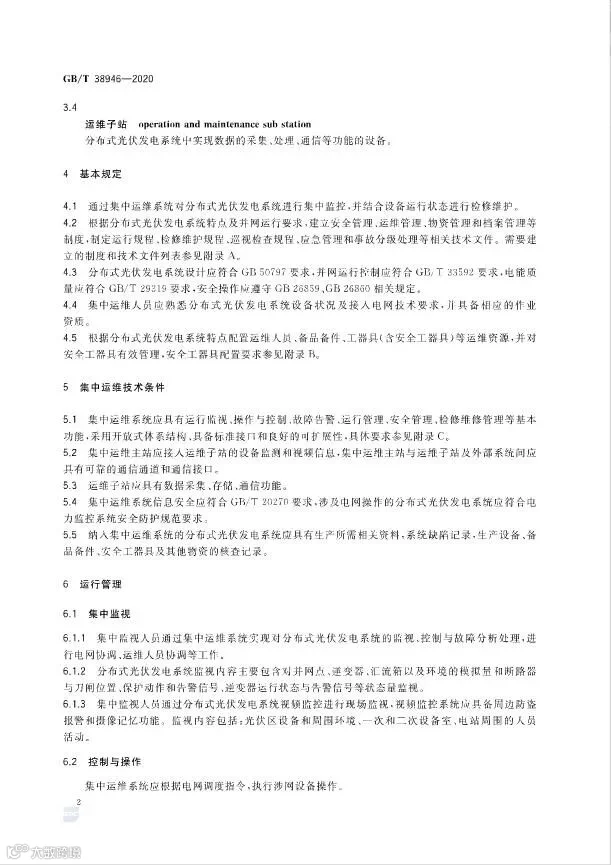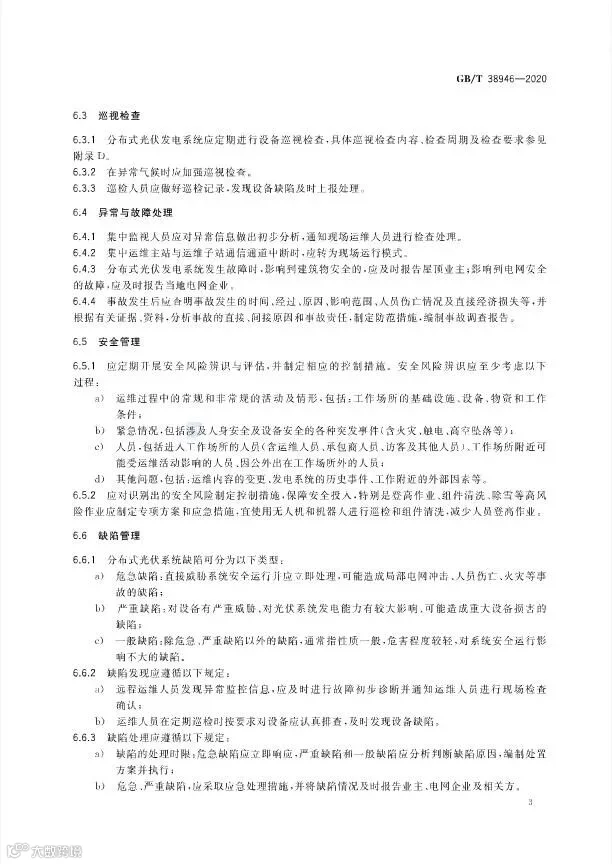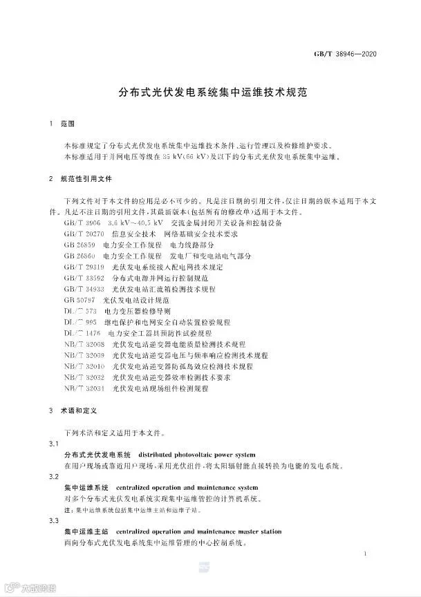 近日,国家标准化管理委员会发布了光伏标准《分布式光伏发电系统集中运维技术规范》,标准号:GB/T 38946-2020,该标准将于2021年1月1日开始实施。