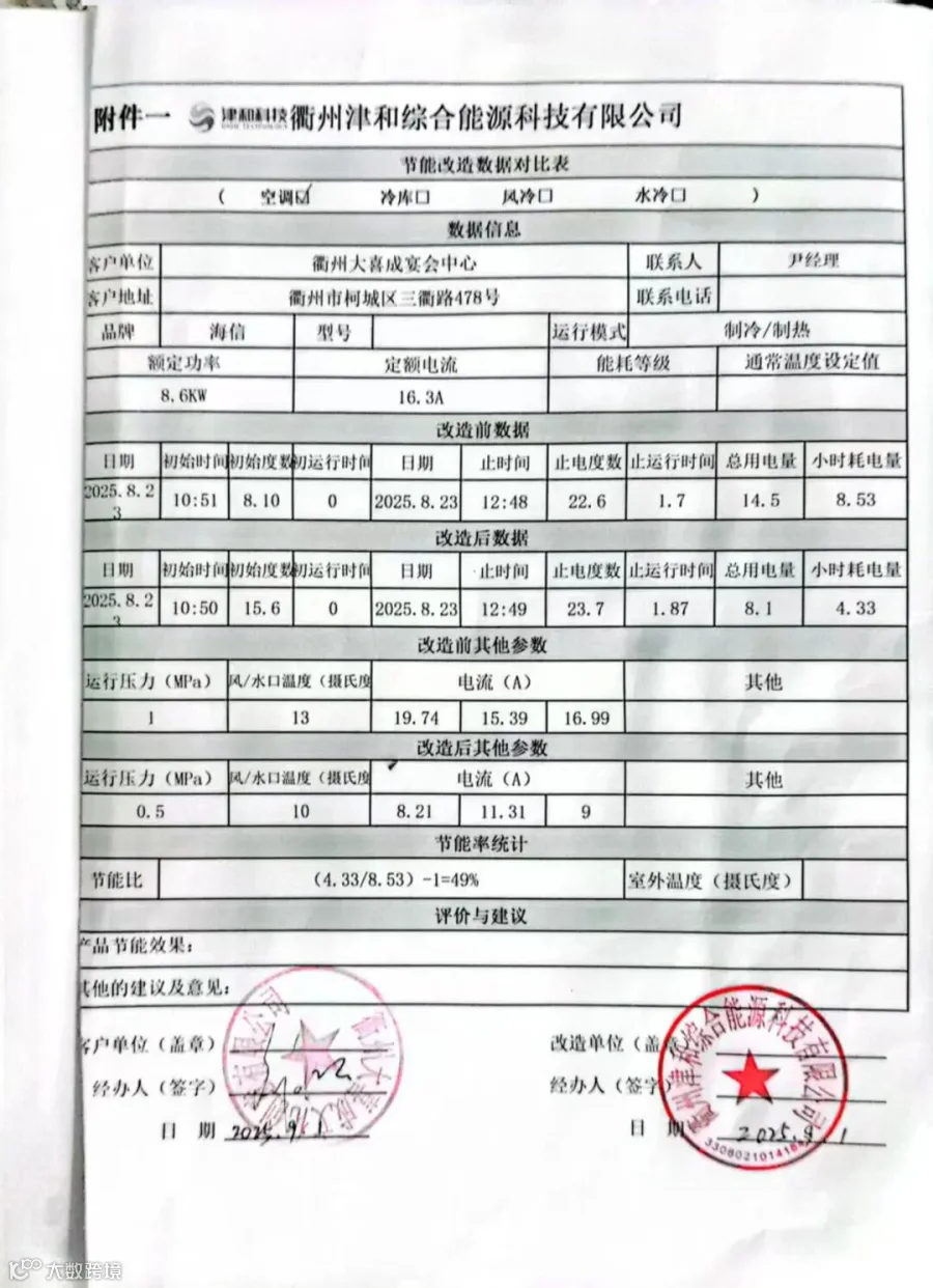 例如与某酒店签订的合同中,注明的节能率为30%(节能率由双方签章确认,并在合同中注明生效)
