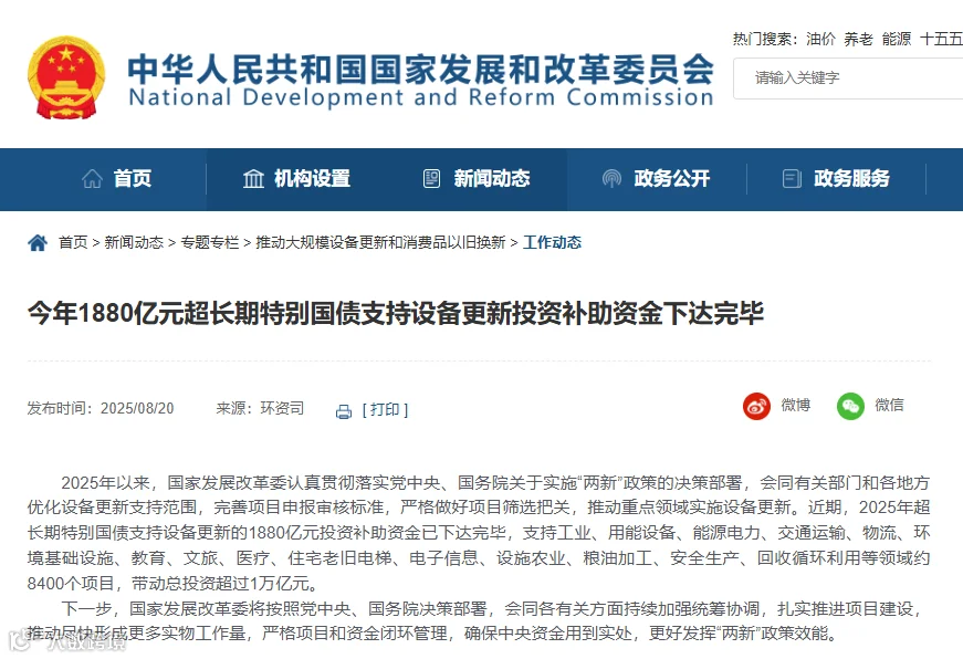 与此同时,2025年超长期特别国债支持设备更新的1880亿元投资补助资金已全面下达,其中工业、用能设备等多个项目被列为重点支持领域,带动总投资约1万亿元,这一实质性资金支持将极大推动行业快速发展。