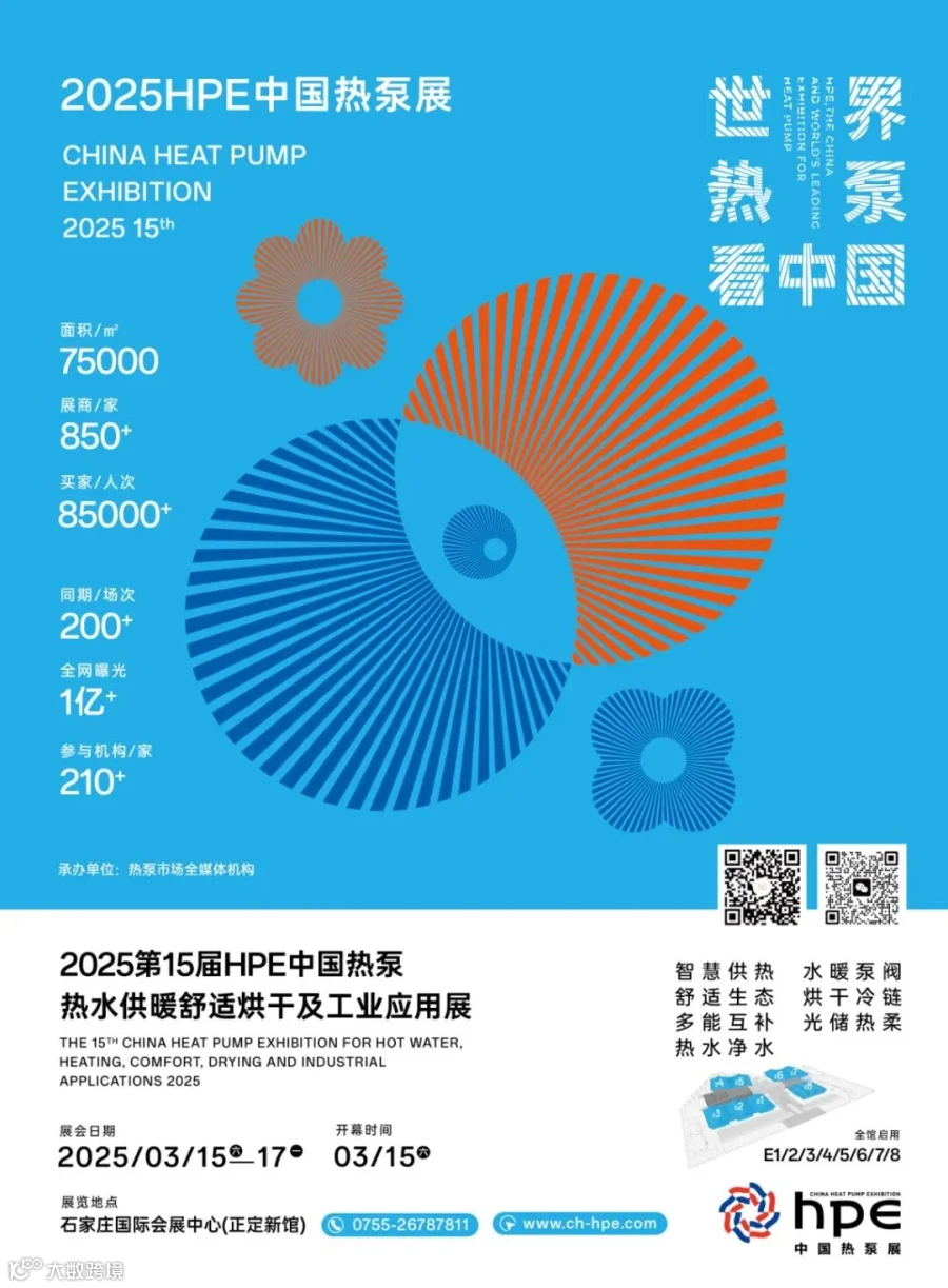 2025年3月15-17日,2025 HPE中国热泵展将在石家庄国际会展中心隆重召开。