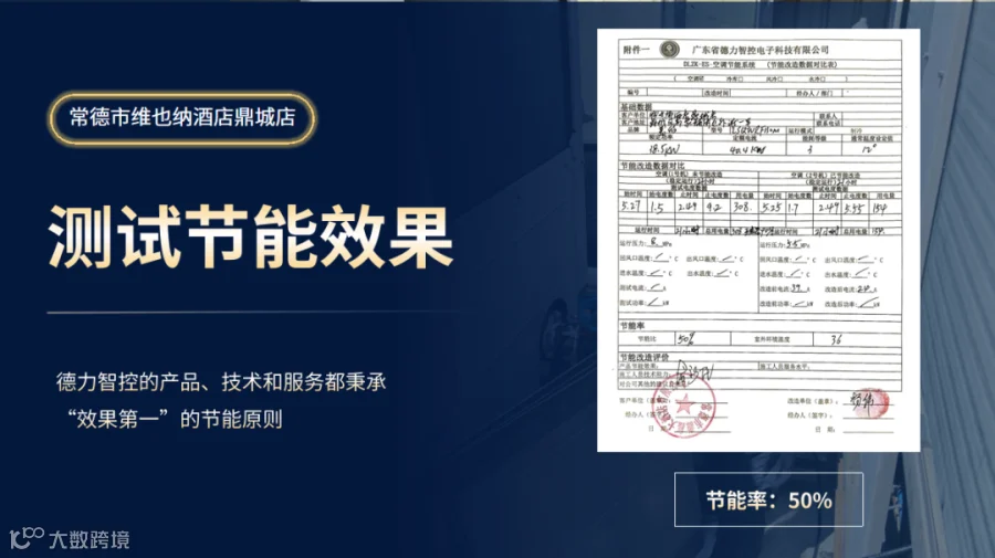 近期,常德市维也纳酒店(鼎城店)选择了德力智控进行全面的空调节能改造,实地测算的改造效果是节能省电50%,直接省了一半电费!