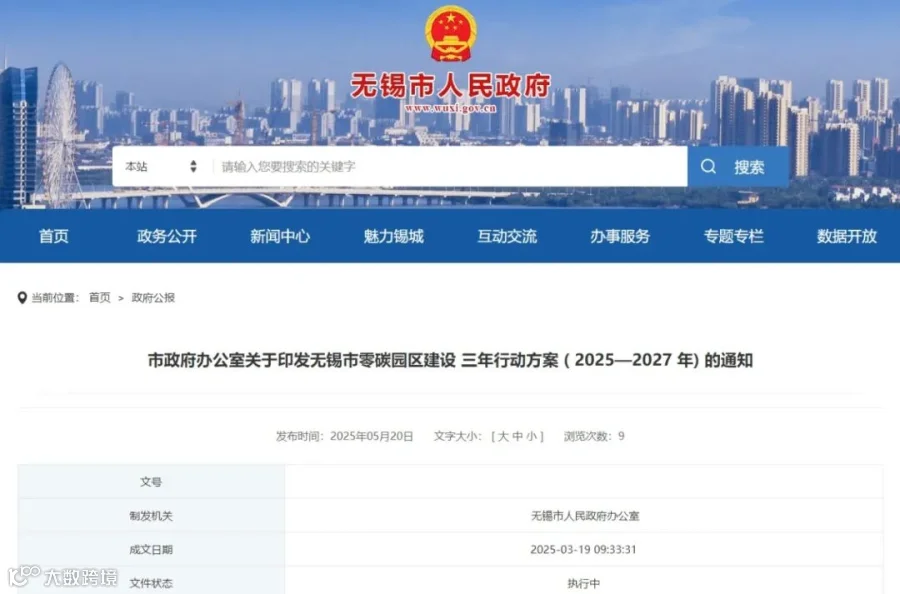 5月20日,江苏省无锡市政府办公室印发《无锡市零碳园区建设三年行动方案(2025—2027年)》 ,明确提出要通过实施能源结构优化、节能降碳改造、智慧能源管理等措施,打造一批具有示范引领作用的零碳园区。