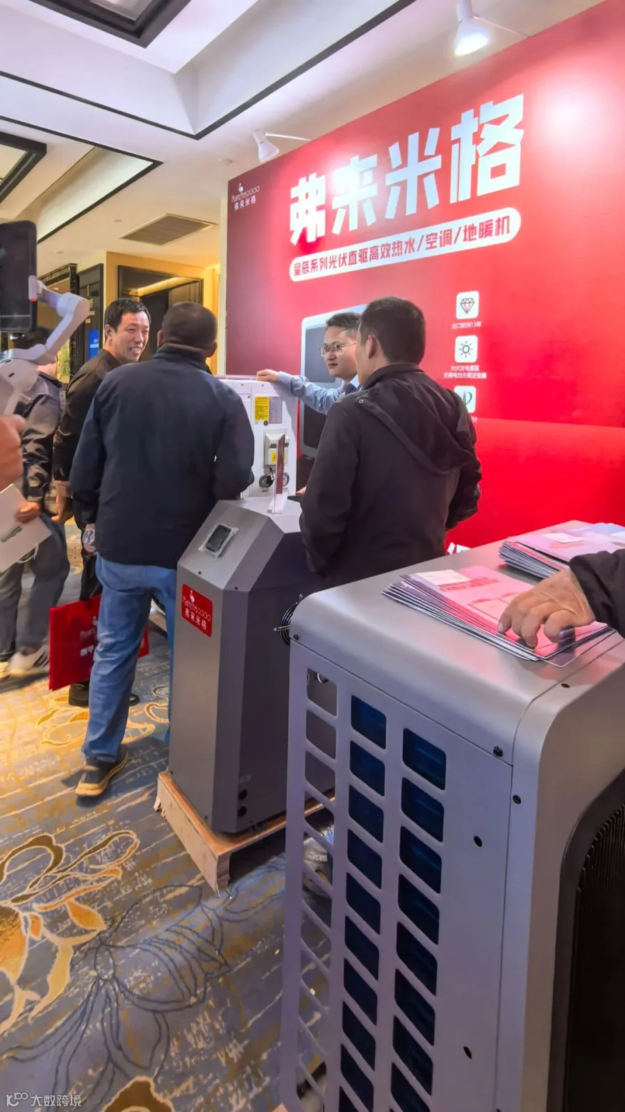 本次展会,弗来米格团队准备了三台性能强悍、免电池、免逆变器的光伏直驱变频空气能产品亮相,并在展位上进行实物展示及讲解,吸引了众多参展人员驻足观看。