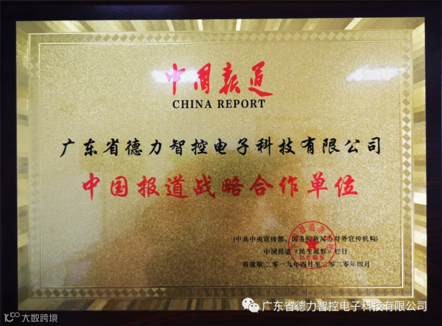近日,《中国报道》与我司广东省德力智控电子科技有限公司签署战略合作伙伴协议。《中国报道》相关领导向我司德力智控授予“中国报道战略合作单位”牌匾。