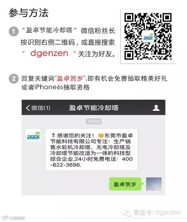 ☀ 定期推送盈卓公司冷却塔改造,水轮机冷却塔,无电机冷却塔,等诸多专业知识内容,专业冷却塔改造、100%节能省电!关注我们妥妥没错!(联系电话:400-622-3696)微信号:dgenzen