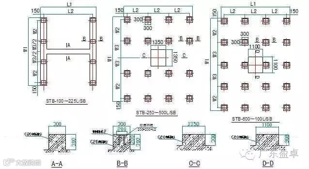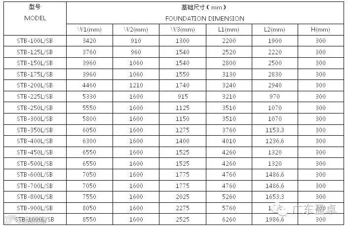 STB系列低噪音横流式水轮机方塔基础尺寸表