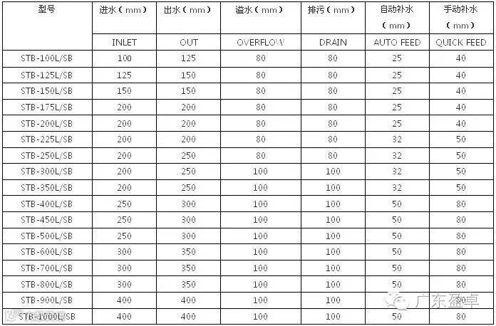 STB系列低噪音横流式水轮机方塔配管尺寸表
