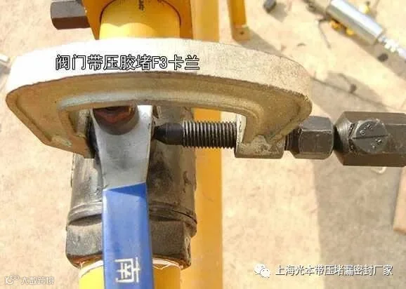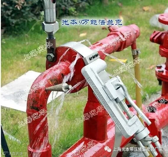最新方法:使用GBD万能卡带就简单了,可以将GBD万能卡带卡在任何规格的法兰上,然后用GF16-丝杆注胶嘴从法兰的连接螺丝上注密封剂,这样可以在几十分钟即可解决堵漏。