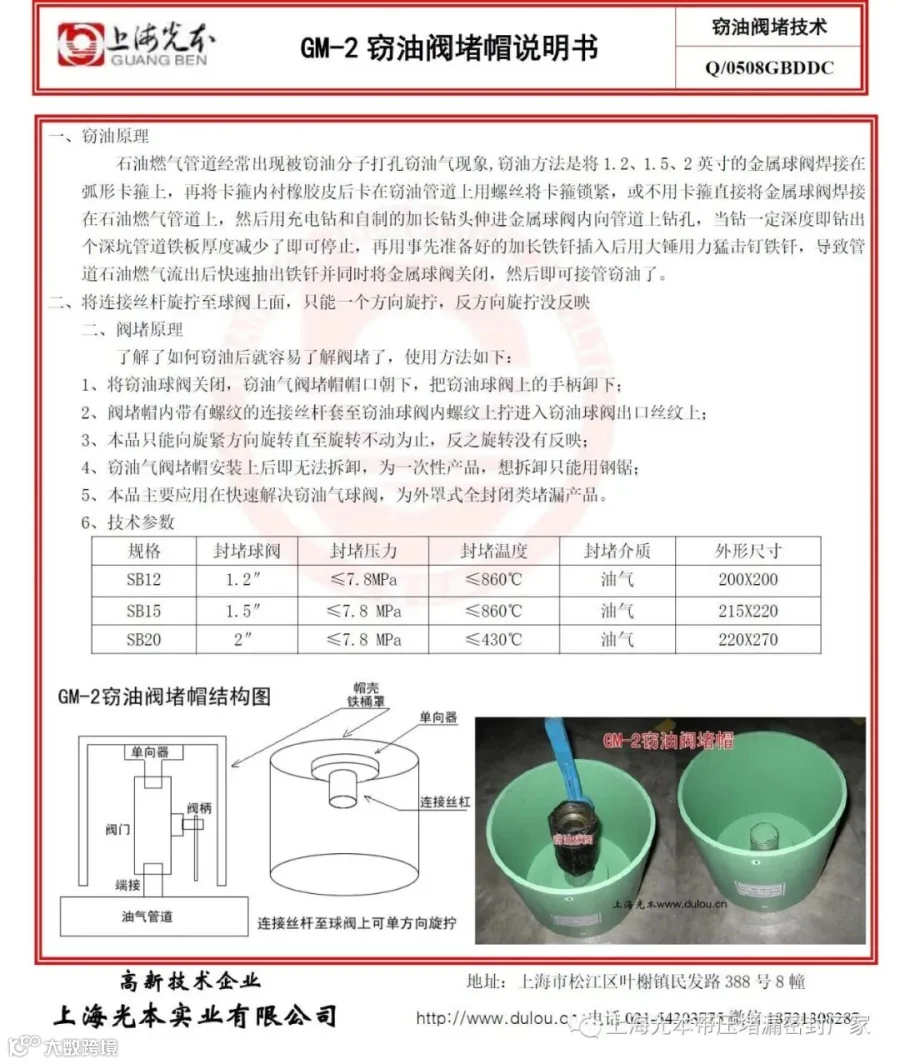 5、本品主要应用在快速解决窃油气球阀,为外罩式全封闭类堵漏产品。