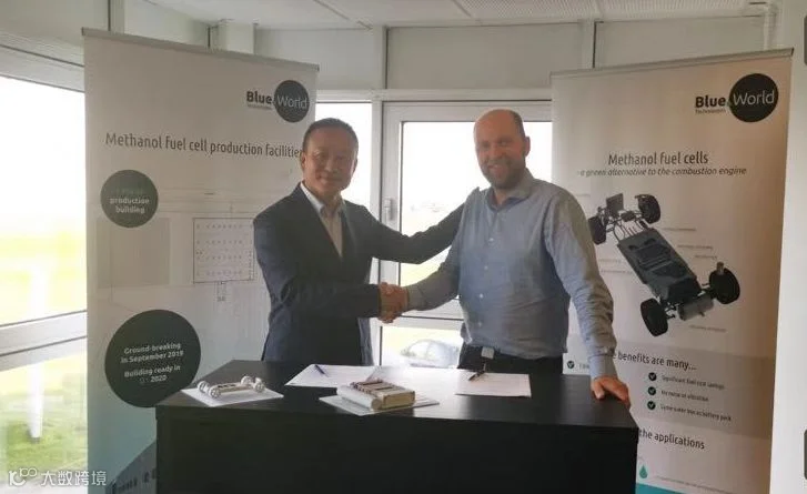2019年初,MOH摩氢科技与Blue World蓝色世界签署了投资协议,同时双方签署了中国联合制造合作协议,庆典仪式后王戈董事长同Blue World CEO Ander先生签署了首批500台甲醇燃料电池电堆