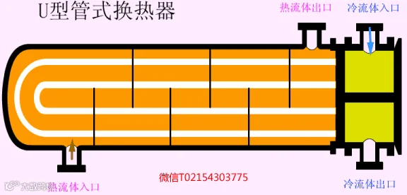 U型管式换热器结构比较简单,但管程不易清洗,只适用于洁净且不易结垢的铆料,如高压气体的换热。其缺点是管子内壁清洗困难,管子更换困难,管板上排列的管子少。优点是结构简单,质量轻,适用于高温高压条件。