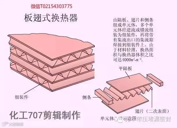 其传热系数约为管壳式换热器的2倍。结构紧凑,体积小。耐温、抗压,最高工作温度可达800℃,最高工作压力达 6.3兆帕。同时扁平流道中流体高速流动,且板面平滑,不易结垢,板束可拆出,清洗也方便。但这种换热器制造工艺较管壳式换热器复杂,焊接量大且要求高,因而它的推广应用受到一定限制。