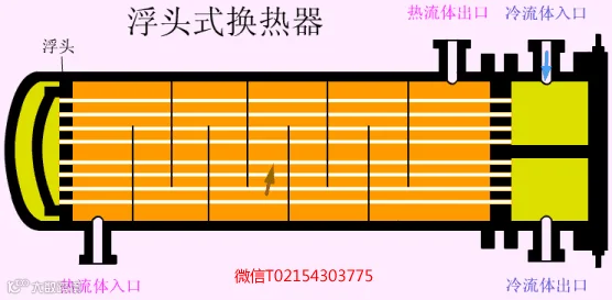 浮头式换热器消除了温差应力,管束可以抽出,以方便清洗管、壳程,介质间温差不受限制,可在高温、高压下工作,一般温度小于等于450度,压力小于等于6.4兆帕;可用于结垢比较严重的场合或管程易腐蚀场合。其缺点是小浮头易发生内漏。金属材料耗量大,成本高20%。结构复杂。