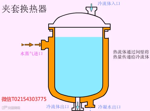 夹套式换热器是间壁式换热器的一种,在容器外壁安装夹套制成,结构简单;但其加热面受容器壁面限制,传热系数也不高。广泛用于反应过程的加热和冷却。