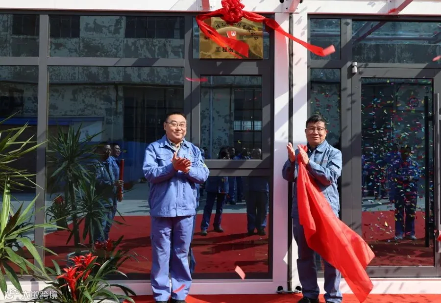 仪式现场庄重热烈,红绸覆盖的牌匾,承载着全体同仁的期盼,象征着工程分公司这颗充满生命力的种子,即将破土生长、绽放光彩。