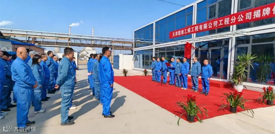 致辞结束后,董事长与总经理共同为工程分公司揭牌,红绸揭开,“天津联维乙烯工程有限公司工程分公司”牌匾熠熠生辉,标志着工程分公司正式启航。