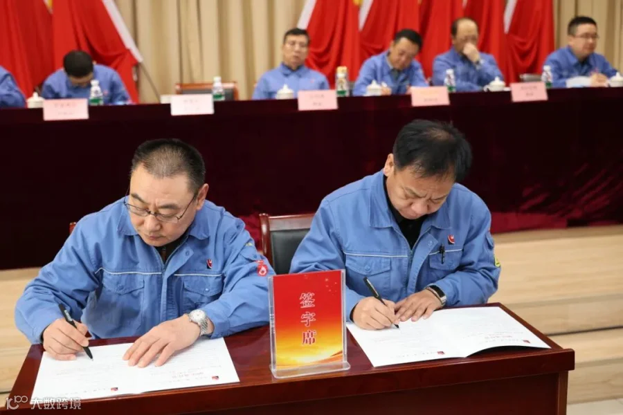 公司董事长戴云海与各部门、二级单位负责人签订2026年度QHSE责任书。(武汉分公司、烟台分公司QHSE责任书,将以邮寄的形式进行签订。)