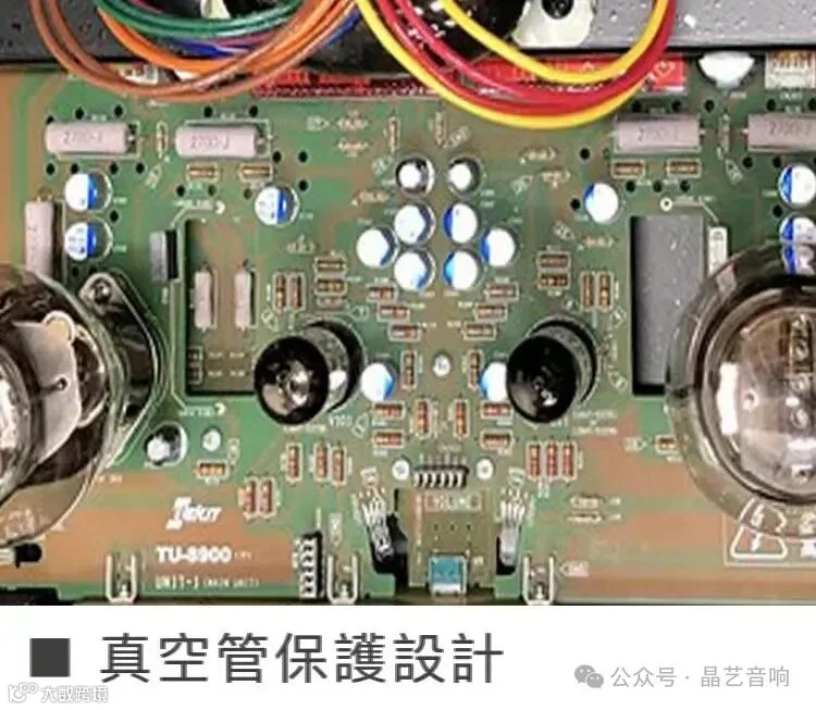 直热式和旁热式的真空管预热时间大不相同。在大多数设计中扩大机通电后会同时开始加热直热式 300B / 2A3 真空管(快速预热)以及旁热式的 12AU7(较慢的预热)。而在 TU-8900E 中,是先加热旁热式真空管后加再加热300B 。不会使尚未完全预热的真空管过载,对于真空管的耐用性与损耗都有良好的保护作用。