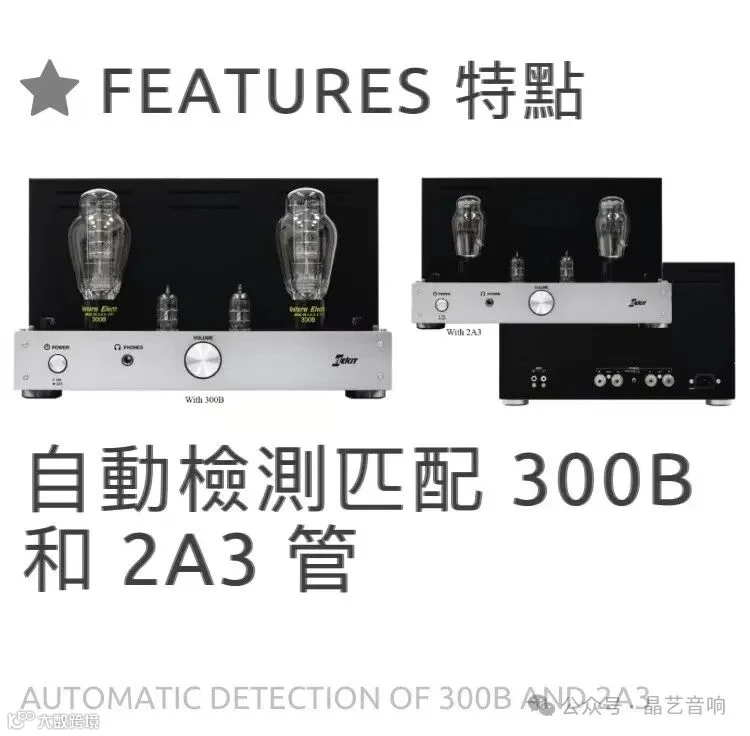 300B 和 2A3 这样直热式的三极管在发烧友们一直享有很高的评价且受到欢迎。300B 具有浓厚的中频韵味和宽松的低音表现,2A3 则具有细腻的表现张力和柔和滑顺的美妙音色,它们各自具其独一无二的特色氛围。然而这两种真空管虽然外观相似,但电路特性却大不相同。TU-8900E 透过 ELEKIT 独特的巧思与设计,如今我们能够在不调整或是改变任何真空管扩大机参数设定的情况下,随揷即用享受着 2A3 与 300B 所带来的迷人魅力,不论是古典的老管或是现代还在生产的近代管,乐?友?们均可自由尝试各种不同品牌版本所带来的乐趣。( TU-8900E 套件均不包含真空管 )