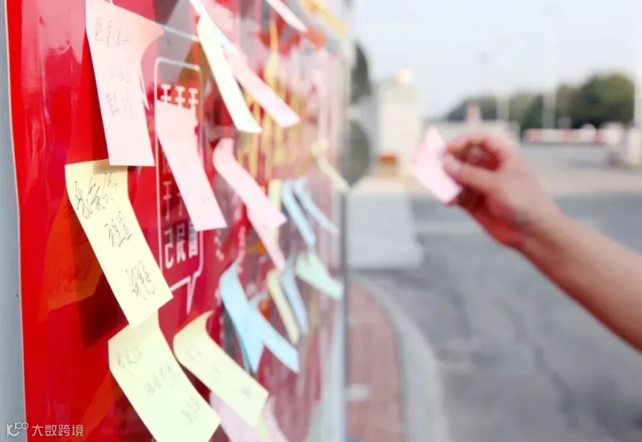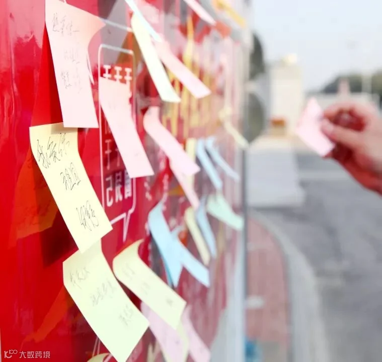红色的告白墙很快就被一张张写下美好祝福贴纸粘满