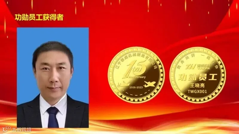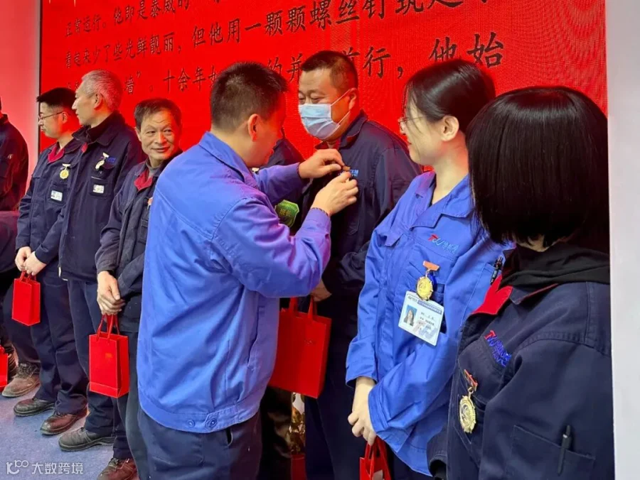 总经理徐刚先生为入职十周年工作者佩戴奖章