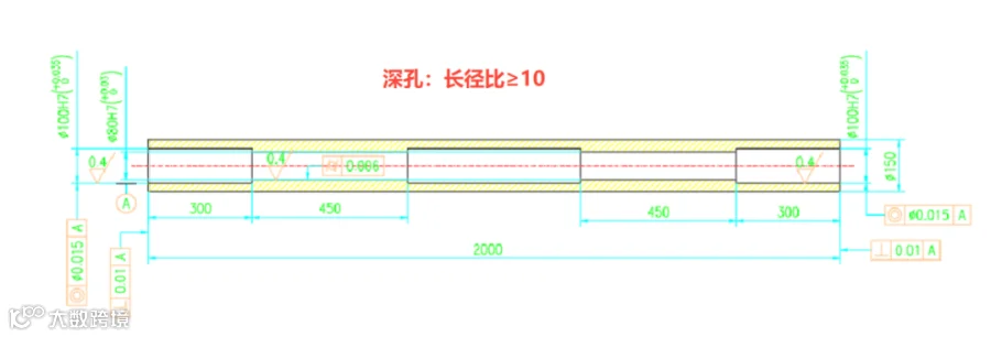 缸筒内孔加工精度稳定在H7,表面粗糙度达到Ra0.2 ~0.8μm,形位精度达到IT6级。其中内孔圆柱度≤0.01mm、内孔母线直线度(中心轴线直线度)0.01/1000。