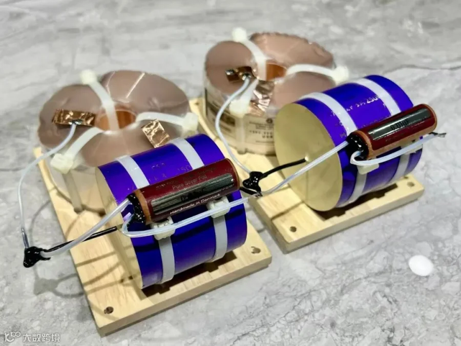 元件选用,美国Goertz铜箔电感,这款美国AlphaCore公司的电感可以说没有它,基本音箱是不会好声。 其低音延展性与Q度其他电感难以匹敌。中高音电容采用英国的Clarity CSA顶级电容配丹麦Duelund银箔油浸电容。