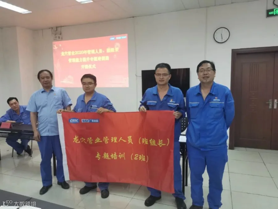 6月18日下午,龙穴管业2020年管理人员、班组长管理能力提升专题培训班正式开班。总经理周圣平为培训班作开班致辞,党支部书记、副总经理邹双桂为培训班授旗。副总经理苏挺、专务冯伟常及全体业务主管以上人员、部分班组长/基层管理人员代表共40余人参加了开班仪式。