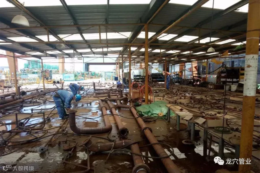 我们广州龙穴管业有限公司是由中国船舶工业集团公司下属的广船国际有限公司、中船科技股份有限公司、上船舶工艺研究所三家大型国有企业(事业)单位投资组建而成的,具备完成船舶管子从下料、弯管、装配、电焊、试压、表面处理(酸洗磷化、热浸镀锌、特涂、涂塑、铜管清洗、不锈钢清洗钝化)、集托配送等一条龙的加工和服务。管子加工包括DN15~1100的碳钢管、海工管、各种规格的紫铜管、黄铜管、铜镍合金管、不锈钢及双相不锈钢管的加工,车间设施一流,环境一流,质量一流。