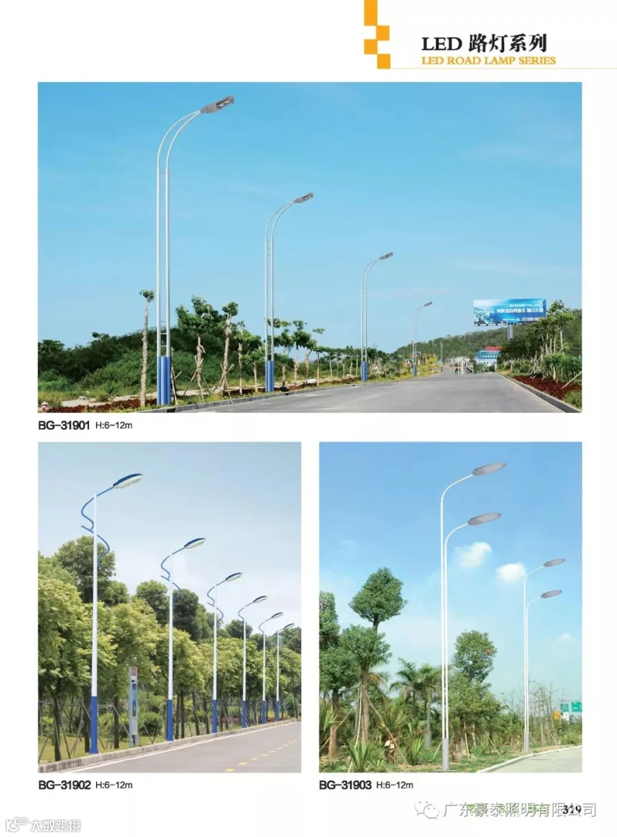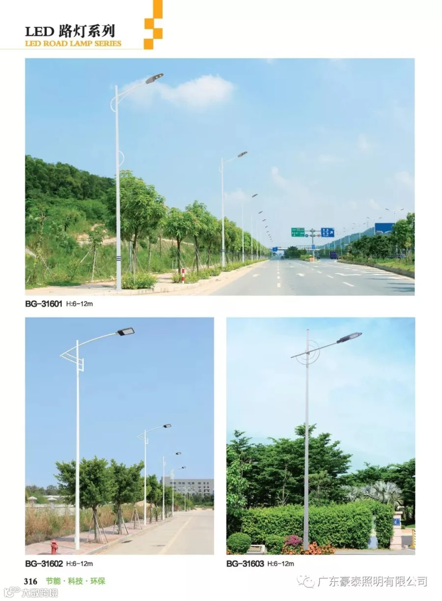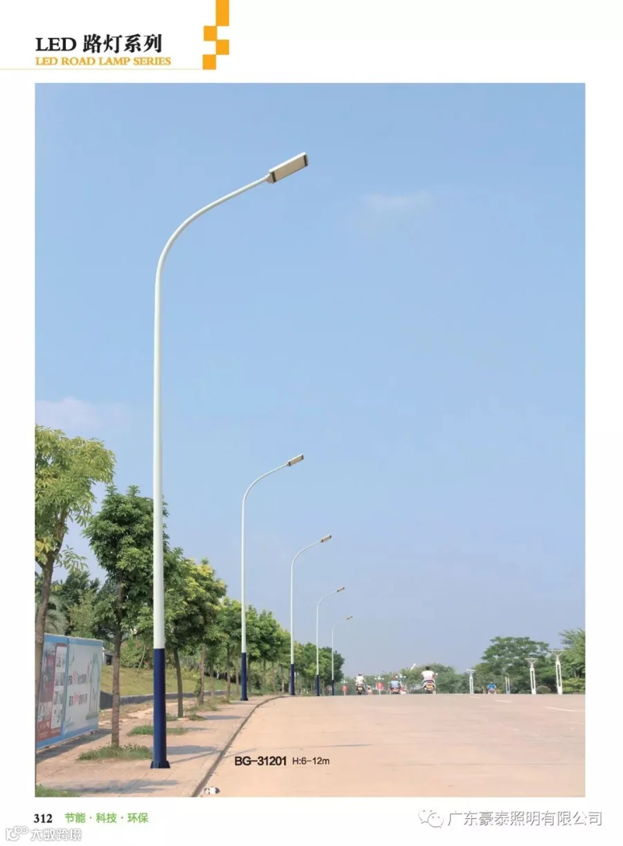路灯与常规路灯不同的是,LED光源采用低压直流供电、由GaN基功率型蓝光LED与黄色合成的高效白光,具有高效、安全、节能、环保、寿命长、响应速度快、显色指数高等独特优点,可广泛应用于道路。外罩可用制作,耐高温达135度,耐低温达-45度。
