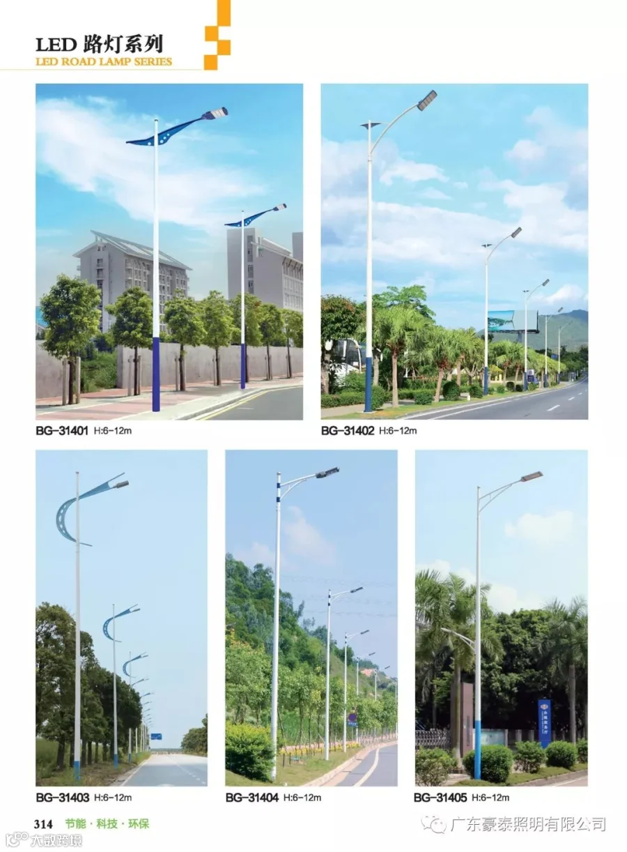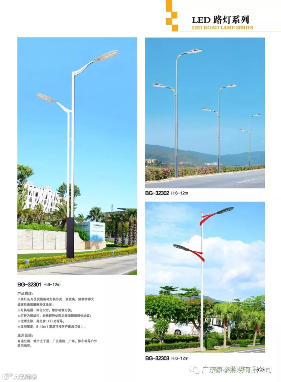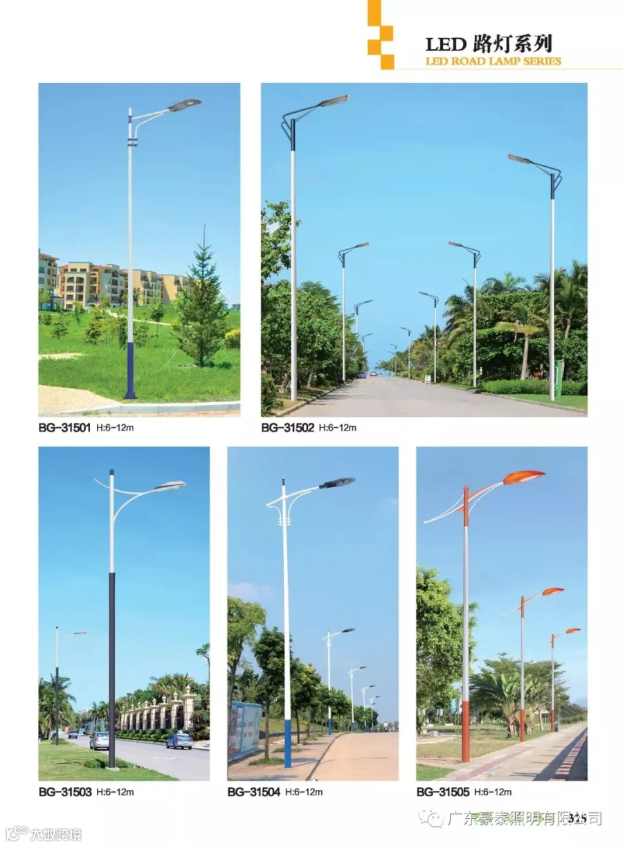 路灯与常规路灯不同的是,LED光源采用低压直流供电、由GaN基功率型蓝光LED与黄色合成的高效白光,具有高效、安全、节能、环保、寿命长、响应速度快、显色指数高等独特优点,可广泛应用于道路。外罩可用制作,耐高温达135度,耐低温达-45度。