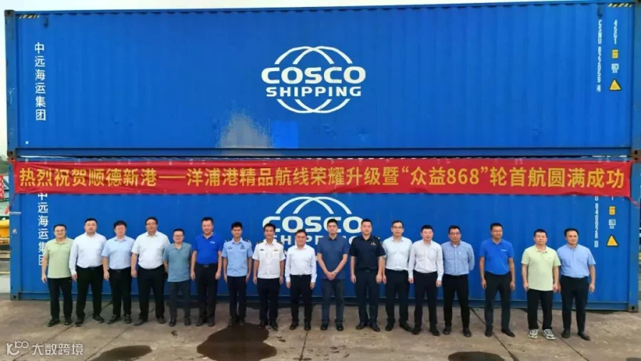 当天,五洲航运、华南集运、招商顺德新港,携手海事、海关、边防等联检单位共聚码头,见证这一历史性启航。