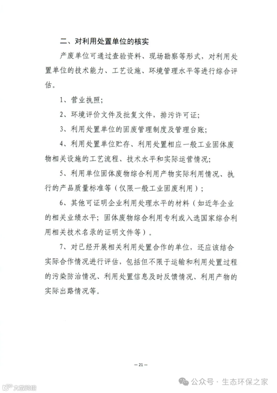 产废单位应通过资料审核、现场评估等多种方式,对下游单位的技术能力、工艺设施、环境管理水平等进行综合评估,择优选择,避免将一般工业固体废物一包了之、一转了之。