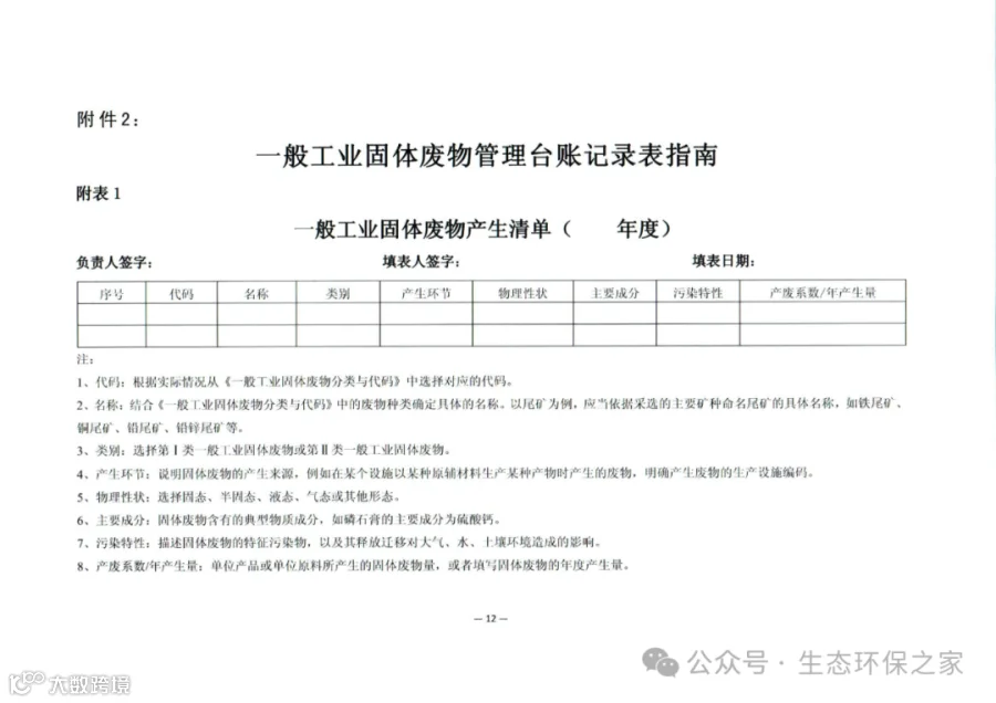 产废单位应按照生态环境部发布的《一般工业固体废物管理台账制定指南(试行)》要求,建立管理台账。