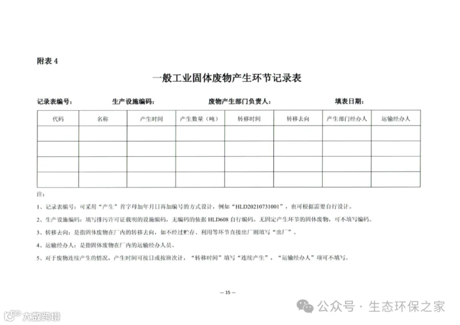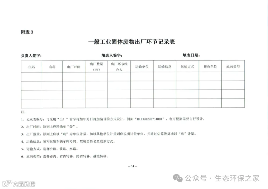 台账应包括《一般工业固体废物产生清单》《一般工业固体废物流向汇总表》《一般工业固体废物出厂环节记录表》,其中,《一般工业固体废物产生清单》应结合环境影响评价、排污许可等材料,根据实际生产运营情况记录一般工业固体废物产生信息,生产工艺发生重大变动等原因导致一般工业固体废物产生种类等发生变化的应及时变更;《一般工业固体废物流向汇总表》要按月填写,记录一般工业固体废物的产生、贮存、利用、处置数量和利用处置方式等信息;《一般工业固体废物出厂环节记录表》按批次填写,每一批次一般工业固体废物的出厂转移信息均应如实记录。