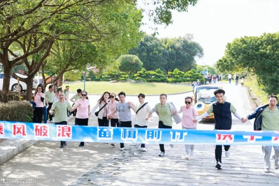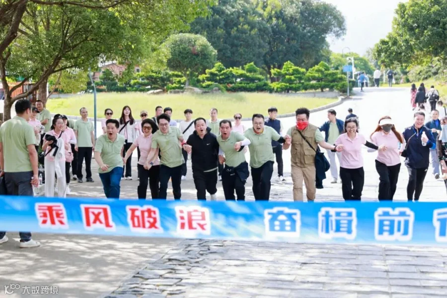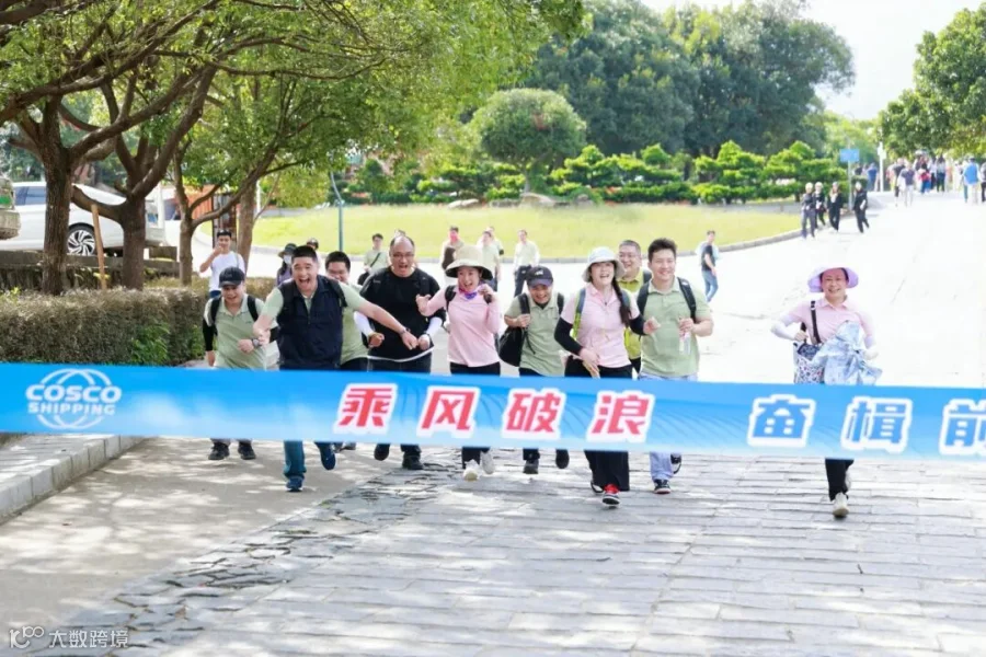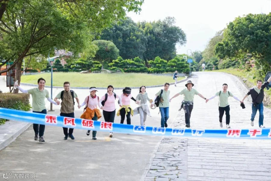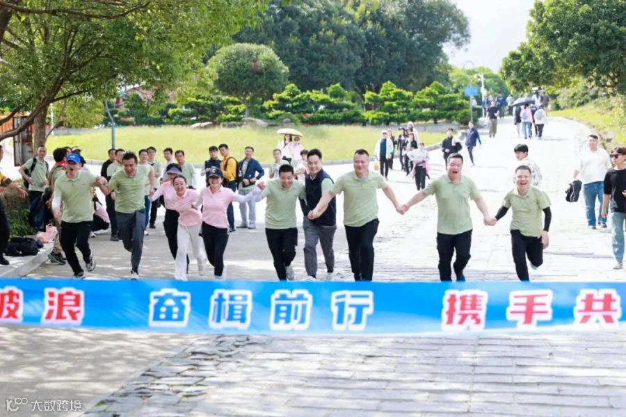 最后的十米冲刺,将徒步的气氛推向了高潮。每个小组的成员们紧握彼此的手,在队长的一声激昂的号令下,大家整齐地迈出步伐,肩并肩地冲向终点。这一激动人心的场景完美地诠释了我们今天的拓展主题——“携手共进 逐梦新章”!