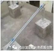 待混凝土基础养护期结束后,清除预制基础上的杂质。将脚支撑对准预埋螺丝按照设计要求进行安装紧固。需对支撑进行直线度和垂直度的调节,可用棉线牵引并两端固定做为基准线,保证支撑在水平(沿棉线)方向上是一条直线;用水平尺对后支撑进行找平,保证其在垂直方向上是一条直线。预紧、调平后,对支撑进行复紧,达到规定的扭力矩,确保强度。脚支撑安装结束后,进行横梁的安装,每组横梁间距尺寸需符合设计要求及组件安装孔尺寸要求。将横梁放到脚支撑上、预紧,用棉线将其带直,将不平的地方调平;用水平尺将安放组件的横梁面调至一个平面上,将调平后的横梁拧紧(参考下图)。