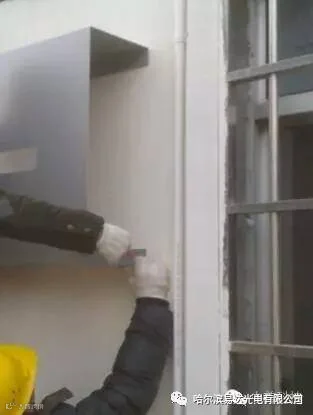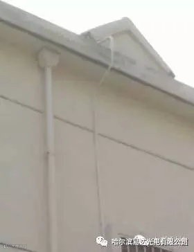 按照规划及设计要求制作电气管道,并用线夹及自攻钉将其固定在屋面及墙面上,电缆管道应与排水管道分离。弯头、爬坡及下坡处需将电气管道按照穿越角度折弯处理,使管道的可以较好的紧缚在建筑物上(参考下图)。