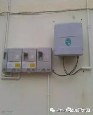 由专业的电工进行电网、电表及逆变器的线路连接,逆变器交流输出端需设置有浪涌保护器及电路断接元器件,以符合设计要求及国标规定(参考下图)。