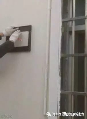 根据厂商提供的逆变器底座尺寸制作相应的墙面安装孔定位模具,并在相应位置描点、标识并开孔。在开好的孔中植入膨胀螺母,用螺丝将逆变器底座紧固定在墙体上,在规划的位置安装逆变器(参考下图)。