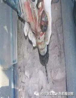 a) 采用工业电锤在定位点进行打孔,选择一个与膨胀螺栓的胀紧圈(管)相同直径的合金钻头,孔的深度应不大于螺栓的长度,不得打穿屋顶。然后用气筒或气泵将所打植筋孔内灰尘吹净,清理干净孔内杂质,孔内不应有灰尘或明水等;